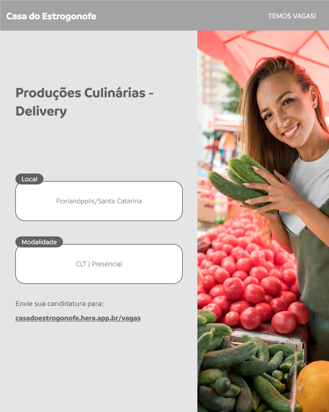 Pequenas produções culinárias e seus porcionamentos, como arroz, molho de tomate e empanamentos. Recebimento e despacho de pedidos. Não precisa de experiência, treinamos no local. Horário de trabalho é das 08h às 15:20h ou as 15h às 23:20h, conforme acordado em entrevista. Folgas 1 vez por semana e trabalha domingos intercalados, ou seja, 1 domingo sim e 1 domingo não.